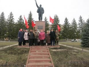 собрания коммунисты возложили цветы к памятнику В.И. Ленину, установленному в