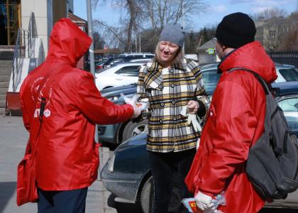прохожие омичи разбирали у депутата Федина маски, как горячие пирожки. Иван