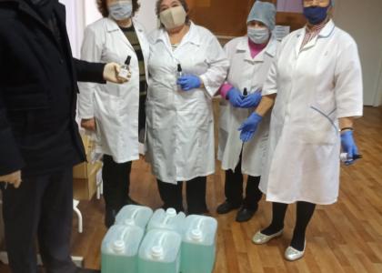 поликлинику были переданы 13 коробок (520 флаконов) с гигиеническим спреем для