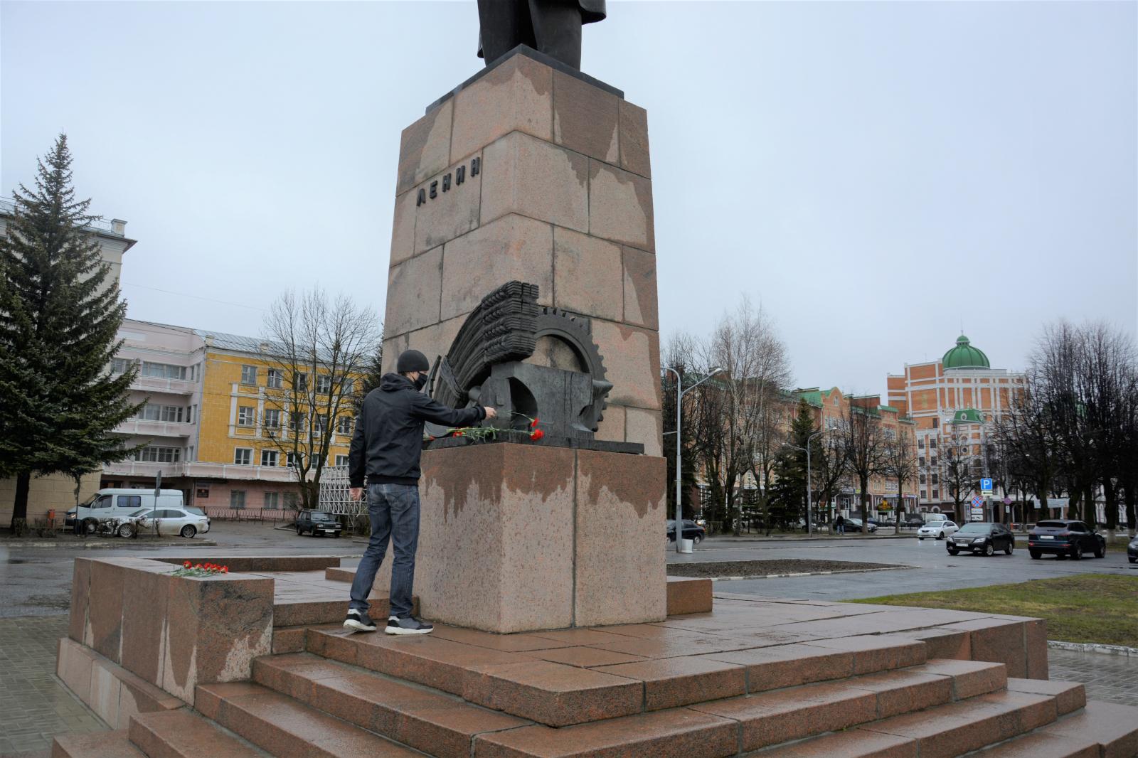 Йошкар-Оле, на площади Ленина, цветы к памятнику Ильичу возложили коммунисты и