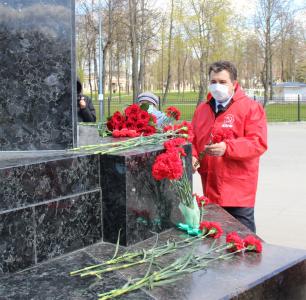 мероприятия возложили к подножию монумента Ленину красные гвоздики.