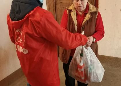 коммунисты разносят продуктовые наборы малообеспеченным и неполным семьям.