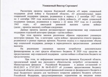 Поддерживает ли Правительство Калужской области проект закона о «детях войны»?