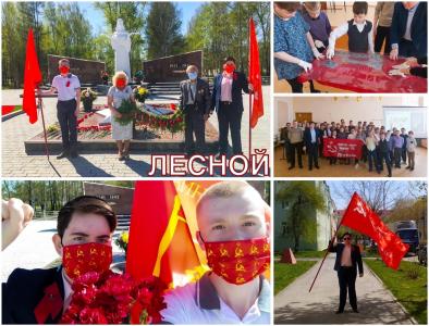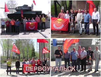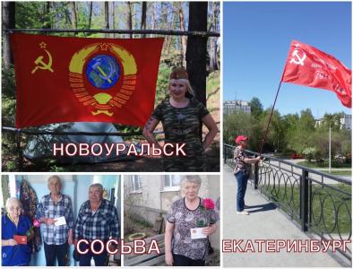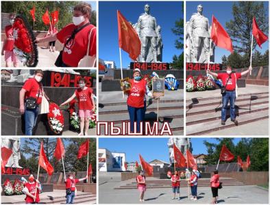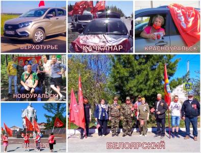 Возложение цветов к памятникам, автопробеги, шествия со знаменем Победы прошли во всех городах и сёлах среднего Урала, сияя красным цветом флагов КПРФ.