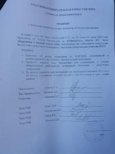Стоит отметить, что к заседанию председателем участковой комиссии было представлено некое решение УИК, согласно которому после составления протокола в сейфе были обнаружены два пакета с бюллетенями досрочного голосования, в связи с чем протокол признаётся недействительным. При этом решение не содержит ни даты, ни времени его составления. Подпись Григория Кармелюка в нём также отсутствует. По его словам, решение этого в день голосования не принималось, почти все члены комиссии покинули участок одновременно. Более того, Григорий совместно с братом председателя Дмитрием Лютенко относил в кабинет сейф и он был пустой.