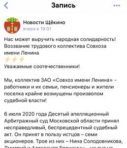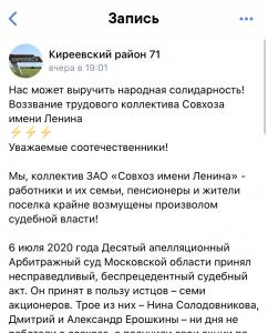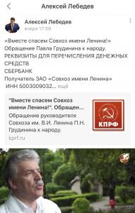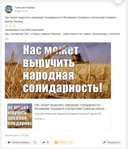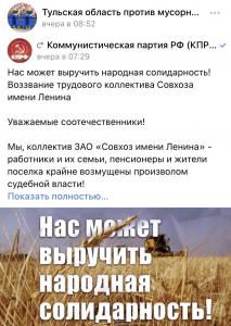 После решения апелляционного арбитражного суда Московской области тульские коммунисты развернули в интернете акцию в защиту Совхоза им. Ленина и поддержали Павла Грудинина.