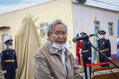 Право открытия бюста предоставили заместителю председателя Государственного Собрания (Ил Тумэн) РС(Я) Виктору Губареву, заместителю управделами главы и правительства республики Виктору Говорову и начальнику измерительного пункта Владимиру Леоненко. Они под звуки Гимна Российской Федерации сняли вуаль с бюста.