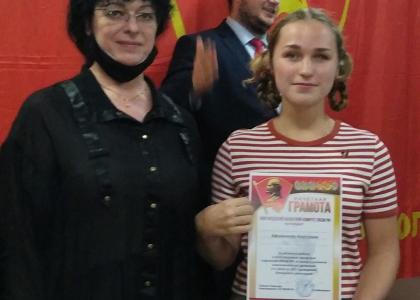 Первый секретарь Новгородского обкома ЛКСМ Никита Макаревич и Первый секретарь горкома КПРФ Татьяна Яковлева вручили 15-ти победителям в разных номинациях дипломы лауреатов регионального этапа конкурса.
