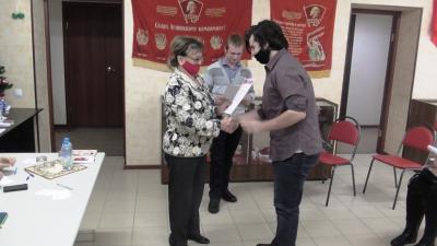 Перед началом работы Конференции О.Н. Алимова в торжественной обстановке вручила комсомольские билеты молодым людям, влившимся в комсомольскую семью. Затем были вручены грамоты наиболее активным членам Саратовского областного отделения ЛКСМ РФ.