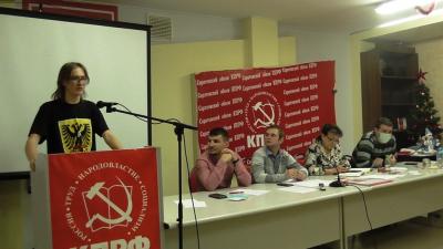 В заключение прений перед комсомольцами с напутственным словом выступила лидер саратовских коммунистов О.Н. Алимова. Она призвала ребят активнее отстаивать права молодёжи, максимально использовать в своей борьбе пропаганду коммунистической идеологии и Программы КПРФ, а также активизировать работу по росту и укреплению рядов ЛКСМ РФ.