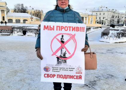 Несмотря на трескучий мороз, активисты КПРФ и ВЖС «Надежда России» вышли на Сусанинскую площадь для сбора подписей. За небольшое количество времени, которое удалось потратить из-за неблагоприятных погодных условий, многие люди успели высказать свою позицию по поводу строительства памятника.