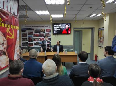 Зал обкома не уместил всех желающих. Когда мы услышали, что очередь к нам до драмтеатра, Николай Николаевич вышел с предложением провести встречу на улице. Сугроб снега во дворе превратился в импровизированную трибуну, с которой выступал Бондаренко. Человек-авторитет, человек-глыба, обладающий высоким интеллектом, глубокими знаниями. Не ошибусь, если скажу, самородок. Он полностью поддерживает политику КПРФ и Зюганова. Более часа длилась встреча на улице, где он призвал своих подписчиков вступать в КПРФ, входить в избирательные комиссии, быть наблюдателями. Тут же был составлен список желающих стать наблюдателями. Несколько человек подошли ко мне с вопросом, как вступить в ряды КПРФ? Их координаты были записаны и переданы ответственным за решение этого вопроса.