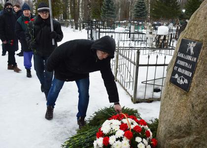 По окончанию мероприятия его участники возложили цветы к памятному камню.