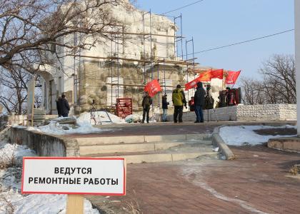 Нынешняя годовщина Волочаевского боя проходила в условиях коронавирусных ограничений. К тому же на вершине сопки Июнь-Корань в настоящее время ведутся полномасштабные работы по реконструкции здания музея. Именно поэтому решено было ограничить количество участников памятной встречи.
