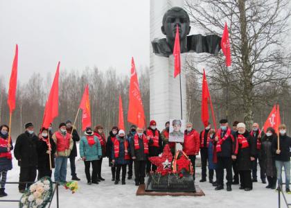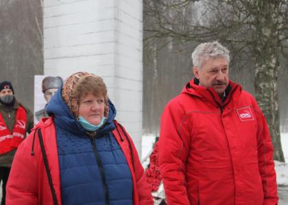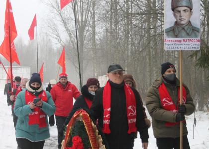 К памятнику Александра Матросова возложили живые цветы. Делегации коммунистов - венок из цветов в форме красной звезды. Затем автоколонна с красными знаменами отправились в д. Чёрное, где захоронение находится на месте военного госпиталя, и покоится свыше 700 советских солдат.