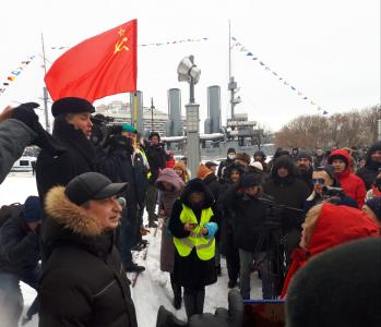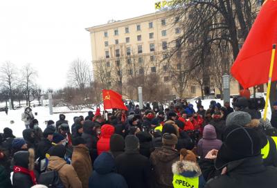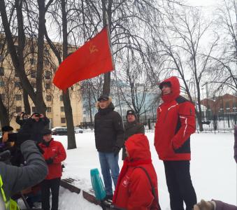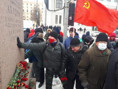 Мероприятие началось в сквере напротив крейсера «Аврора», где, несмотря на 20-градусный мороз и пронизывающий ветер, собрались более 100 человек. Перед собравшимися выступили первый секретарь Санкт-Петербургского горкома партии, член ЦК КПРФ Р.И. Кононенко, а также депутаты городского парламента О.А. Ходунова и И.В. Иванова.