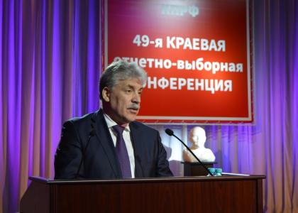 22 февраля состоялась 49-я отчетно-выборная конференция Алтайского краевого отделения КПРФ. В ее работе приняли участие: экс-кандидат в президенты России, директор совхоза им. В.И. Ленина Павел ГРУДИНИН, первый секретарь Пермского крайкома КПРФ Ксения АЙТАКОВА, первый секретарь Алтайского рескома КПРФ Виктор РОМАШКИН.