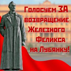Мы призываем всех принять активное участие в начавшемся на электронном портале «Активный гражданин» (https://ag.mos.ru/poll/10351) голосовании по вопросу о памятнике на Лубянской площади, сделав выбор в пользу монумента Феликса Эдмундовича.