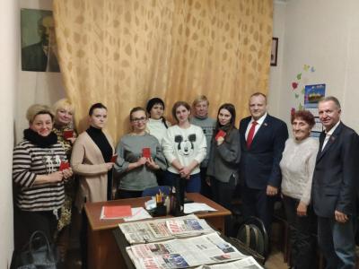 В торжественной обстановке первый секретарь Балашихинского ГК КПРФ - товарищ Дегтяренко А.В. вручил 11 партийных билетов.