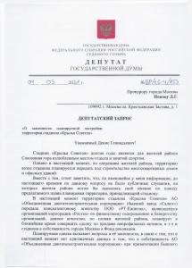 Рассмотрев обращение представительницы жителей района "Соколиная Гора", координатор народной приёмной С.П. Обухов и депутат Государственной Думы В.Ф. Рашкин направили целый ряд депутатских запросов, в которых потребовали у мэрии, «Ростеха», прокуратуры Москвы и Росреестра: