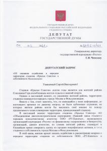 В начале марта в адрес координатора народной приемной депутатов Госдумы и МГД от КПРФ С.П. Обухова поступило обращение от одной из жительниц района "Соколиная Гора" с просьбой помочь прекратить застройку территории легендарного стадиона «Крылья Советов».
