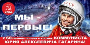 Саратовский обком КПРФ, в канун славного юбилея начала космической эры, разместил в крупных районных центрах Саратовской области (Балаково, Балашове, Ершове, Петровске и Энгельсе) красочные баннеры с портретом Ю.А. Гагарина, чтобы напомнить землякам о Величайшей Победе в Космосе, которая явила самоотверженное мужество советского человека, высочайший уровень развития науки и производства социалистического государства и вдохновляющую созидательную роль Коммунистической партии.