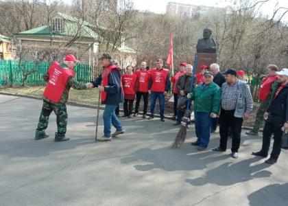 В течение двух дней коммунисты навели порядок в сквере возле памятника В. И. Ленину. Были обрезаны ветхие ветви деревьев, вычищена от мусора площадка, покрашены бордюры и цветники, подновлен серебрянкой сам памятник Владимиру Ильичу. Через несколько дней, 22 апреля, коммунисты вновь вернутся в сквер, чтобы почтить память Вождя и возложить цветы к подножию постамента В.И. Ленина.