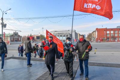 Возложения к памятнику В.И. Ленину разбили на полтора часа, чтобы не создавать скопление людей: все райкомы КПРФ приходили с интервалом по времени. Первыми цветы возложили члены бюро Новосибирского обкома КПРФ: первый секретарь, мэр Новосибирска Анатолий Локоть, второй секретарь Ренат Сулейманов, секретарь по организационной работе Алексей Русаков, вице-спикер Заксобрания Владимир Карпов.