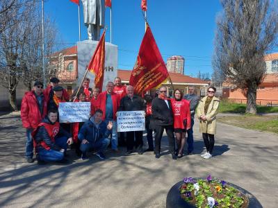 Завершилась акция на площади Ленина: коммунисты возложили цветы к памятнику В.И.Ленину – вождю мирового пролетариата, основателю первого в мире социалистического государства рабочих и крестьян.