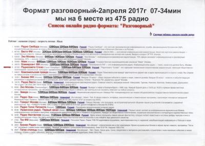 Радиогазета «Слово» на 6 месте в формате разговорный (2017 г.)