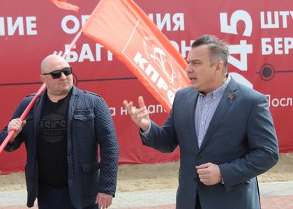 — Красное Знамя Победы – это святыня нашего народа. Этот стяг обагрён кровью наших дедов и отцов. Вот почему сегодня всех нас переполняет радость за то, что впервые за 30 лет с момента развала Советского Союза Красное Знамя поднято над нашей Амурской землей. Ещё десять лет назад об этом нельзя было подумать. Единороссы предлагали в Государственной Думе утвердить в качестве Знамени Победы историческую фальшивку. Но мы, коммунисты вместе с патриотической общественностью смогли тогда отстоять реликвию нашего народа. Сегодня, благодаря нашей принципиальной позиции, Знамя Победы гордо реет над Амуром. И мы приложим все усилия, чтобы это Знамя было водружено над Кремлём, — подчеркнул Роман Кобызов.