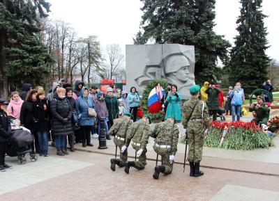 Коммунисты возложили к Вечному огню красные гвоздики.
