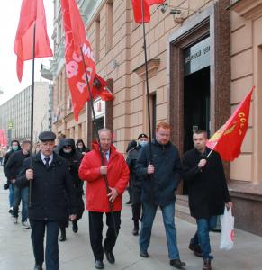 В День Праздника Победы 9 мая 2021 года коммунисты Москвы и их сторонники намеревались возложить цветы к Вечному огню на Могиле Неизвестного Солдата у Кремлевской стены. Однако 12:00 собравшиеся на Пушкинской площади депутаты от КПРФ всех уровней направились под флагами СССР, КПРФ-Москва, под копией Знамени Победы по Тверской улице к центру столицы — к месту сбора участников заранее запланированной торжественной церемонии. Знамя КПРФ-Москва нёс депутат Госдумы, первый секретарь МГК КПРФ В.Ф. Рашкин, а копию Знамени Победы — депутат Госдумы, секретарь МГК КПРФ Д.А. Парфенов. Пройдя по главной улице России, они подчеркнули готовность народно-патриотических сил стоять до конца в защиту исторической правды о Великой Отечественной войне, о героических подвигах нашей Родины, пресекать любые попытки уничтожить нашу страну в настоящее время.