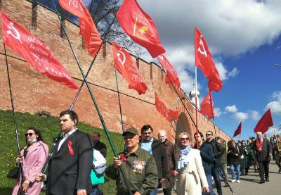 9 мая, на главной площади Великого Новгорода - площади Победы - Софийская, под красными знамёнами собрались коммунисты города, чтобы отметить по-настоящему святой для нашего народа праздник - День Победы.