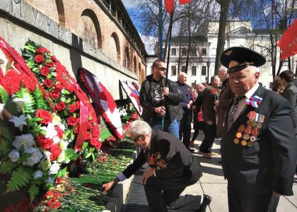 9 мая, на главной площади Великого Новгорода - площади Победы - Софийская, под красными знамёнами собрались коммунисты города, чтобы отметить по-настоящему святой для нашего народа праздник - День Победы.