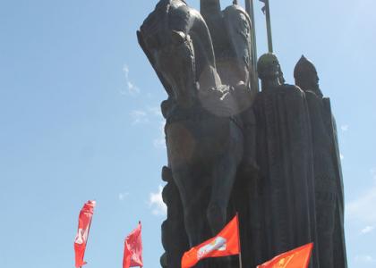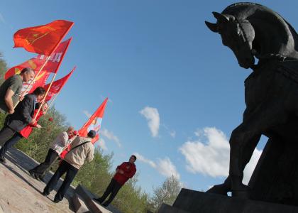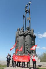 13 мая, в день 800-летия со дня рождения русского святого благоверного князя Александра Невского – защитника Руси, коммунисты Пскова возложили цветы к монументу "Ледовое побоище" на горе Соколихе.