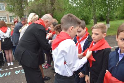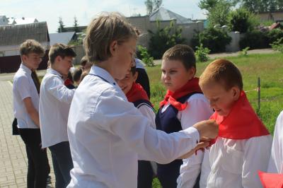 Алые галстуки юным пионерам повязали старшие товарищи. И на призыв "К борьбе за Родину, добро и справедливость, будь готов!" ребята вскинули в пионерском салюте правую руку и дружно ответили: "Всегда готов!"
