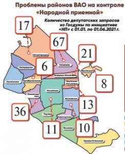 Кстати, на карте-схеме хорошо видна география «горячих точек» округа – где и в каком из районов больше всего проблем, которые пришлось выносить на федеральный уровень Госдумы.