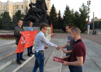 После памятной церемонии первый секретарь Брянского областного отделения ЛКСМ РФ Алексей Агапов вручил комсомольские билеты молодым активистам Бежицкого местного отделения ЛКСМ РФ.