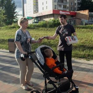 Раздав пачку газеты «Подмосковная правда» коммунисты покинули центр города. Но это ненадолго: на следующей неделе мы снова придем к Вам, чтобы вместе с Вами продолжить борьбу за наши права и за лучшее будущее для нашей страны и наших детей!