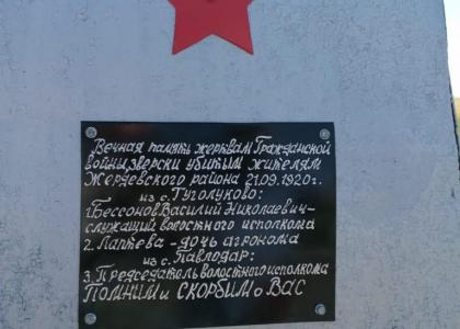 Сто лет назад антоновщина катком прокатилась по Тамбовщине, захватив и Знаменский район. В память о тех временах по всей территории области остались могилы красноармейцев, комсомольцев, милиционеров, просто гражданских лиц, погибших от рук бандитов. Есть и на территории Александровского сельсовета два захоронения, на них в ноябре 1967 года были установлены памятники. Но, кто был в них захоронен, на тот момент уже никто не помнил.
