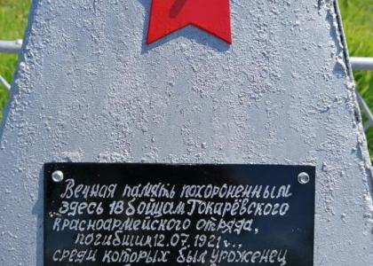 Ещё одно захоронение имеет следующую трагическую историю. 12 июля 1921 года недалеко от Александровки по дороге в сторону Розановки Токарёвского района завязался бой между красноармейцами и антоновцами. В результате боя 18 красноармейцев были захвачены в плен. Их привели в Волчий овраг (теперь он называется Убитый), заставили раздеться, и по приказу того же П.И. Сторожева все были изрублены шашками и исколоты штыками.