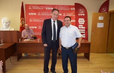 В заключение совещания его участники обменялись мнениями, задали вопросы руководителям областной организации. Затем первый секретарь МК КПРФ Н.И. Васильев вручил от организации подарок ко дню рождения первому секретарю Долгопрудненского ГК КПРФ А.В. Шахназарову.