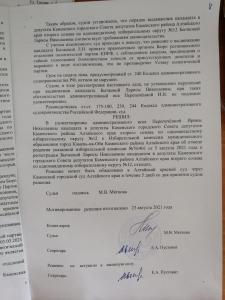 На состоявшемся 26 августа судебном заседании в городе Камень-на-Оби было принято решение оставить без удовлетворения иски кандидатов «партии власти» к кандидатам КПРФ на местных выборах.