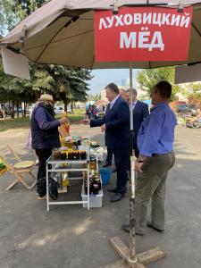 Заместитель Председателя ЦК КПРФ, академик РАН, Председатель Комитета Госдумы по аграрным вопросам Владимир Кашин, глава городского округа Луховицы Владимир Барсуков, секретарь МК КПРФ Сергей Стрельцов посетили Луховицкую ярмарку выходного дня.