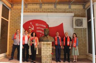 После возложения партийцы принесли гвоздики к бюсту И. В. Сталина, ведь его роль в победе над фашизмом невозможно переоценить.