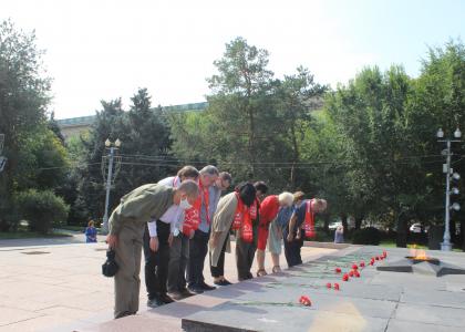 Сегодня, 2 сентября, в День окончания Второй мировой войны, сталинградские коммунисты почтили память павших воинов и возложили цветы к Вечному огню на Аллее Героев.