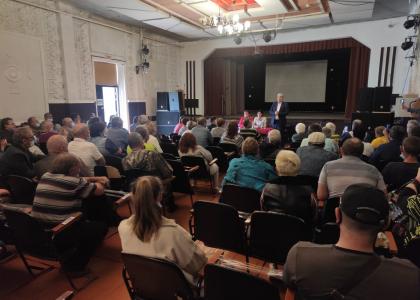 Вечером прошла встреча Павла Грудинина и Марии Прусаковой с избирателями в городе Рубцовск, получившем давно печальное определение «столица безработных». Напомним, что на выборах президента России в 2018 году за Грудинина отдали свои голоса в Рубцовске 27,94% принявших участие в голосовании. Из-за официального отказа предоставить помещение для агитационной встречи в Рубцовске решено было собраться в 19 часов в местном «гайд-парке» - на Набережной имени Петрова. Но за три часа до начала мероприятия на коммунистов вышел представитель администрации и сказал: «Решим вопрос с Домом культуры. Главное, чтобы на улице не проводили. Ведь там численность будет свыше 50 человек и тогда будут претензии у Роспотребнадзора». Люди были уже оповещены про встречу на набережной в 19 часов. Поэтому фактически было два этапа мероприятия в Рубцовске: на набережной и спустя час в Доме культуры. Из-за антиковидных мероприятий в ДК попали только половина из собравшихся (зал рассчитан был при новых ограничениях только на 250 человек).