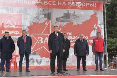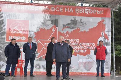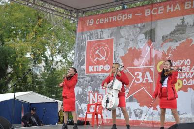 Встреча с кандидатами в депутаты Государственной Думы от КПРФ прошла в центре Новосибирска, в Первомайском сквере. Выступления Владимира Кашина, Казбека Тайсаева, Анатолия Локтя (в качестве первого секретаря областной партийной организации и лидера списка КПРФ в Новосибирской области), Рената Сулейманова, Романа Яковлева и Андрея Жирнова чередовались с номерами от творческих коллективов города.