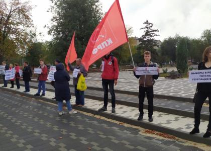 Также в Ленинском районе Волгоградской области коммунисты вышли на улицы с одиночными пикетами, чтобы выразить своё несогласие с результатами трёхдневного голосования.